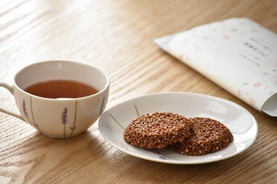 焙煎玄米と黒糖の香り高いおこしです。有機ごまで更に栄養価高く、お茶のお供にぴったりです。